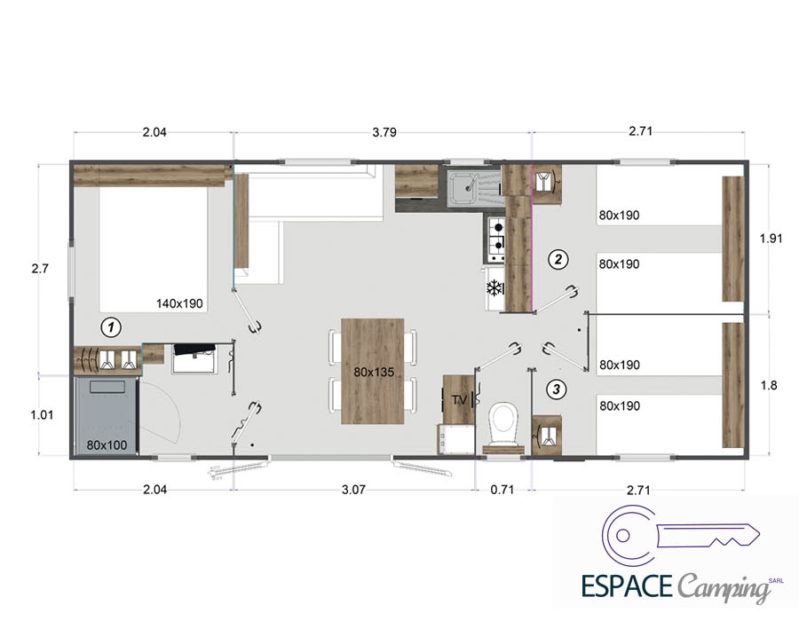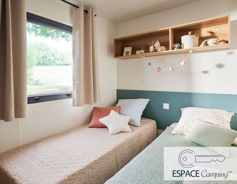 Mobil home NEUF de 3 chambres pour 6 personnes. A vendre directement sur parcelle sur le Camping 4* LE BOSC D'EN ROUG à St Cyprien, au bord de la mer méditerranée et proche de l'Espagne.